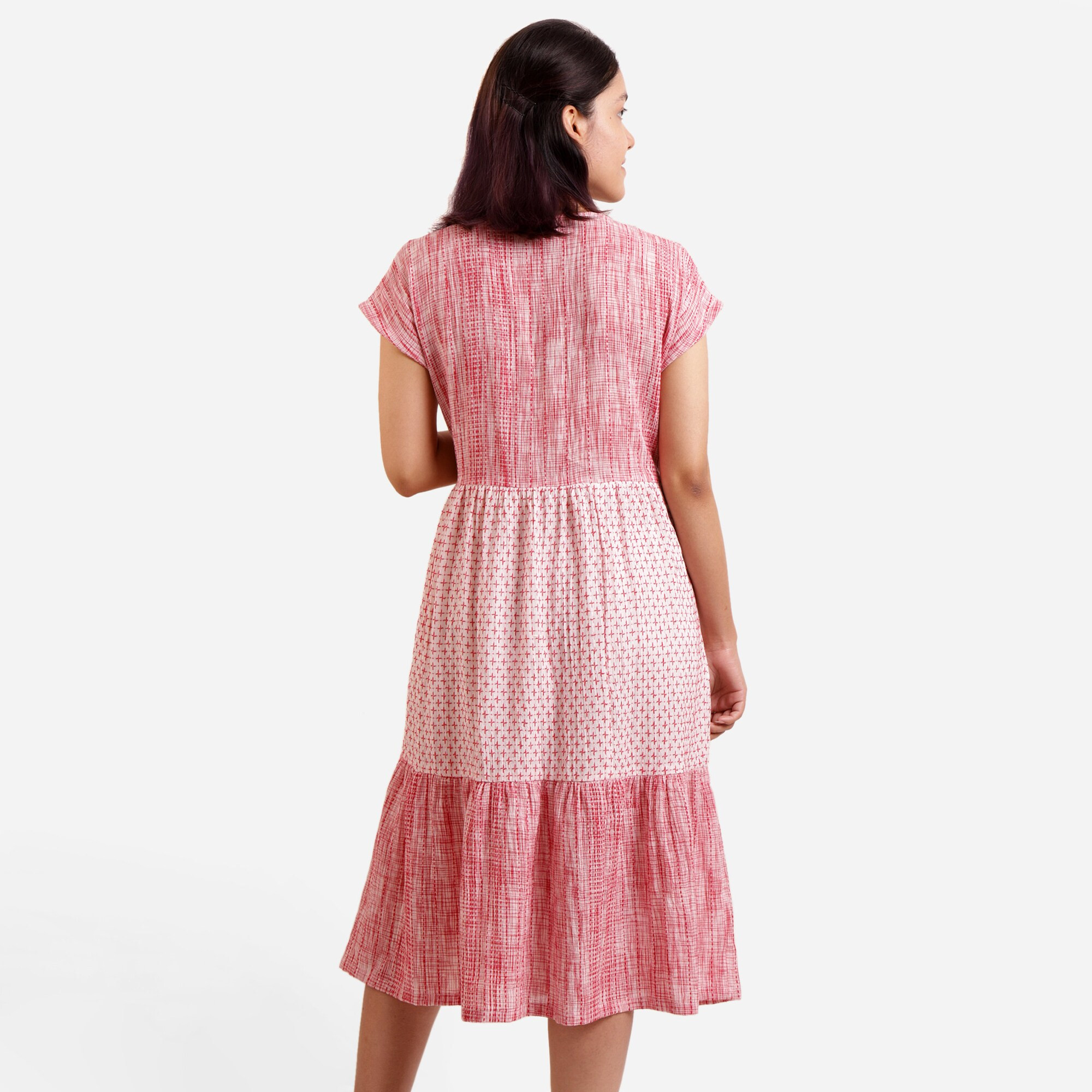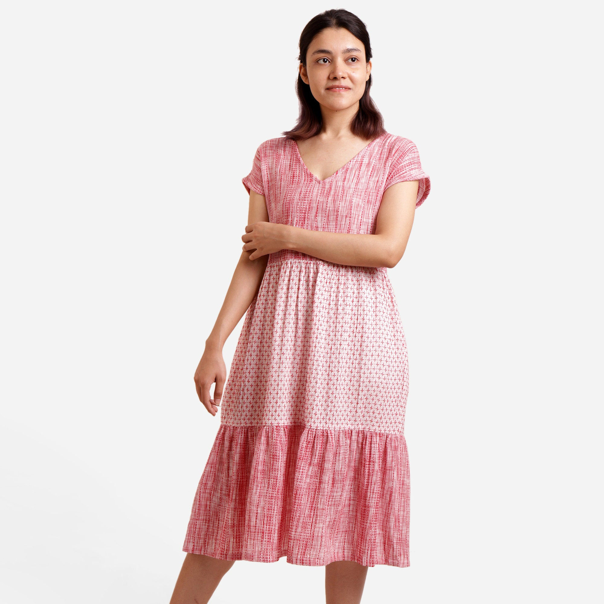 V-Neck, Deep Neck front neck style and Round back neck style for a flattering silhouette.