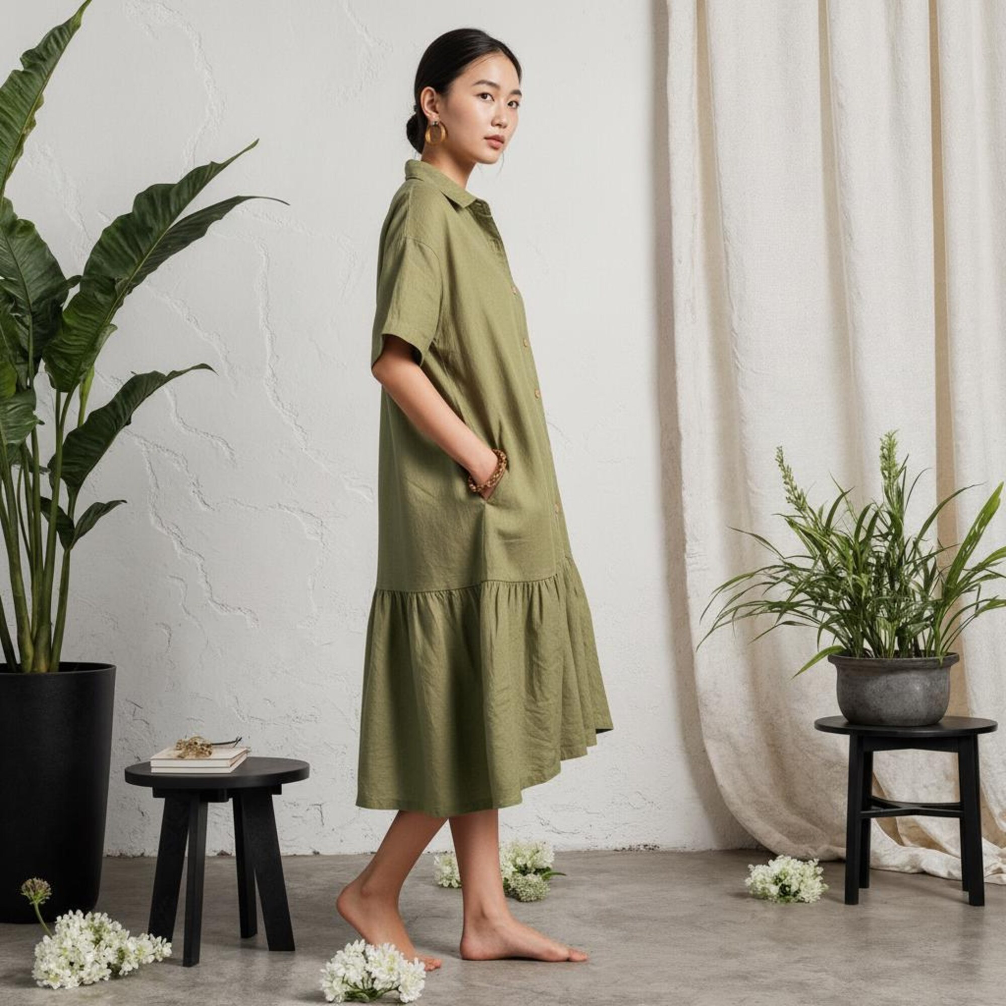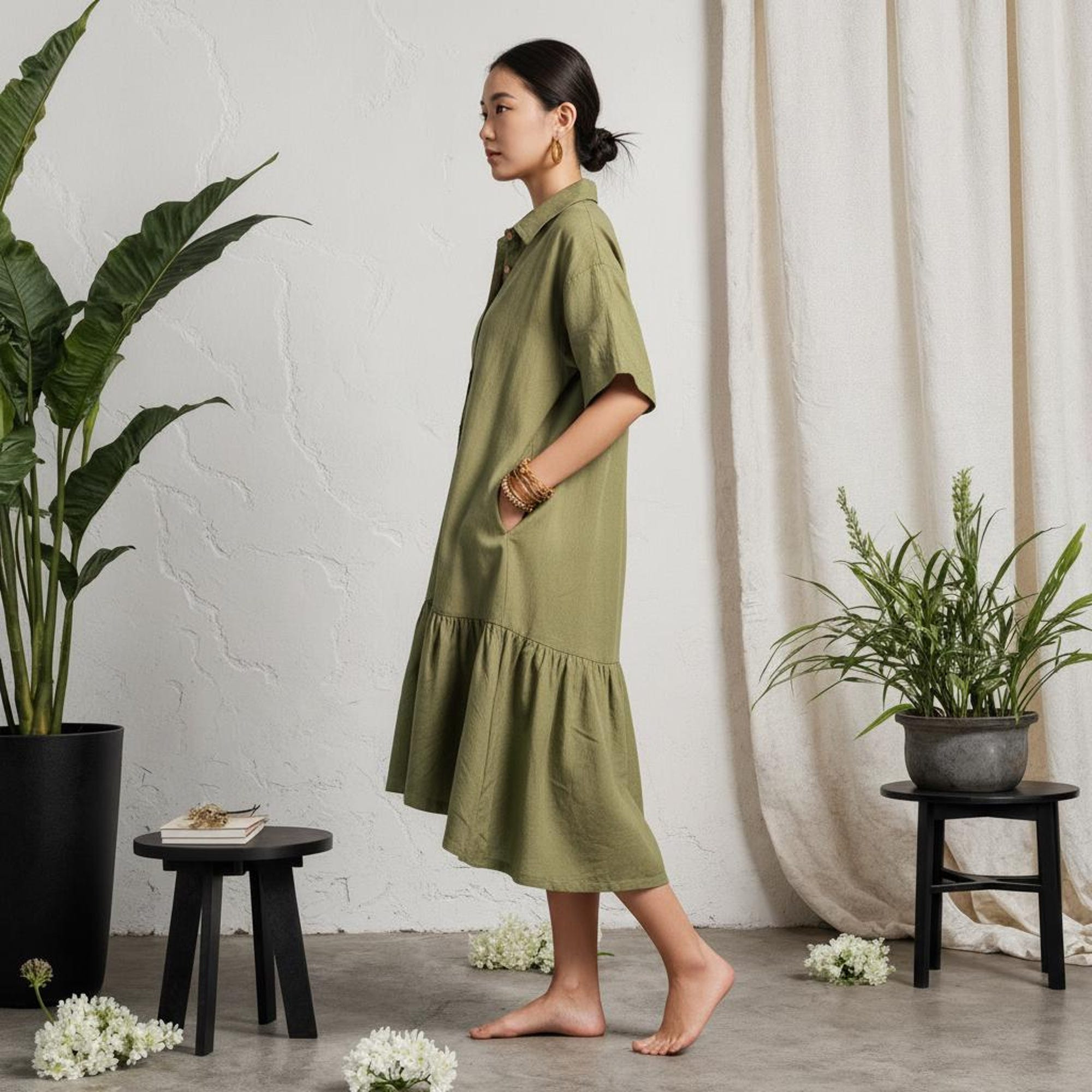 Crafted from a breathable, premium cotton-linen natural blend that feels soft, airy, and comfortable against the skin